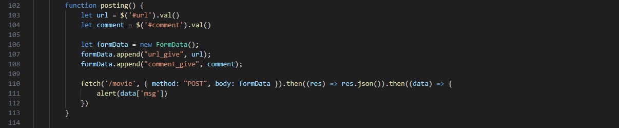 [기록하기] 버튼과 연결된 posting 함수 코드 수정하기 [기록하기] 버튼과 연결된 posting 함수 코드 수정하기
